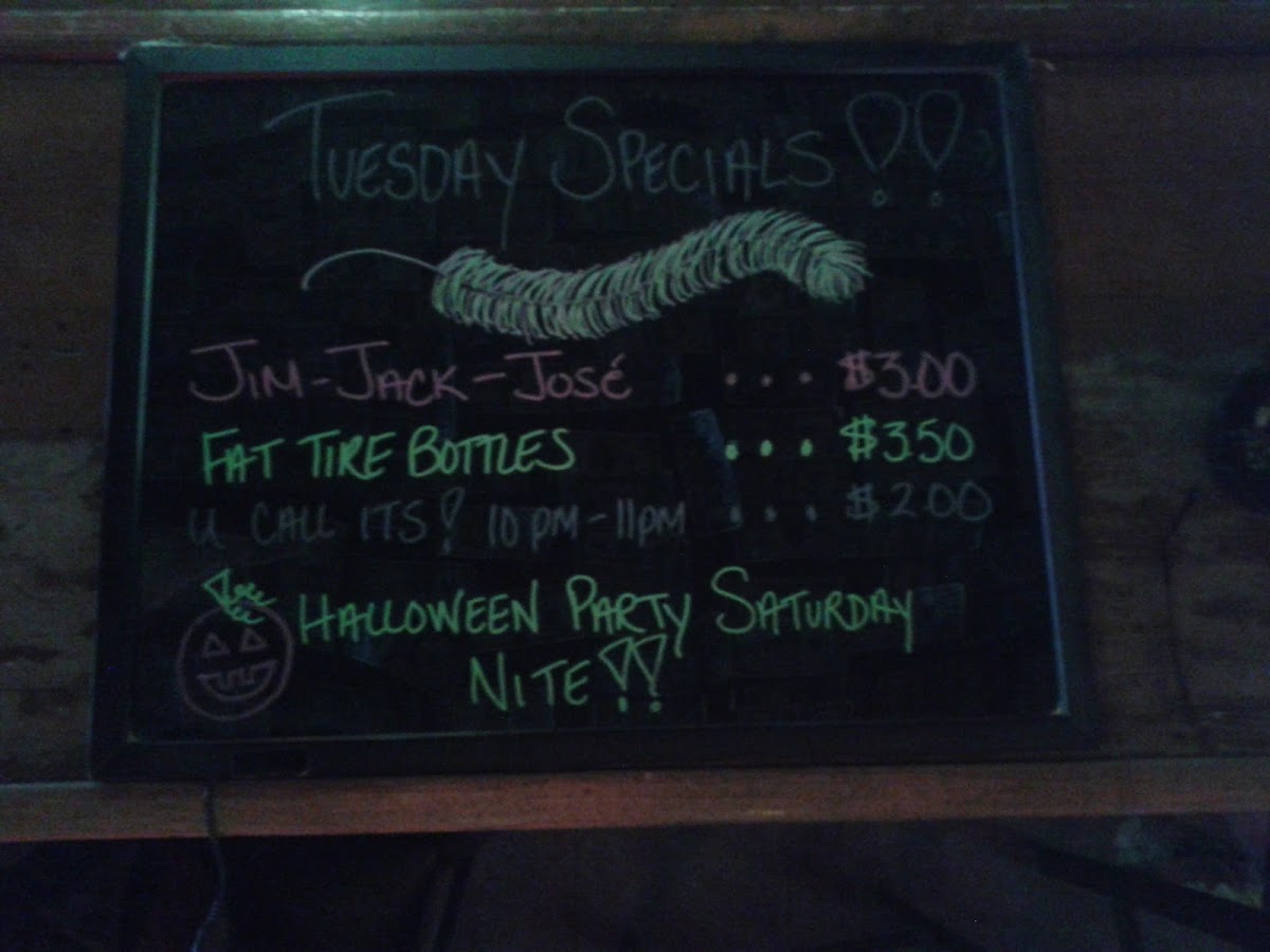 aka "guys night" guys drink happy hour 3 pm - close. jack, jim, jose 3 and new belgium bottled beer 2.75